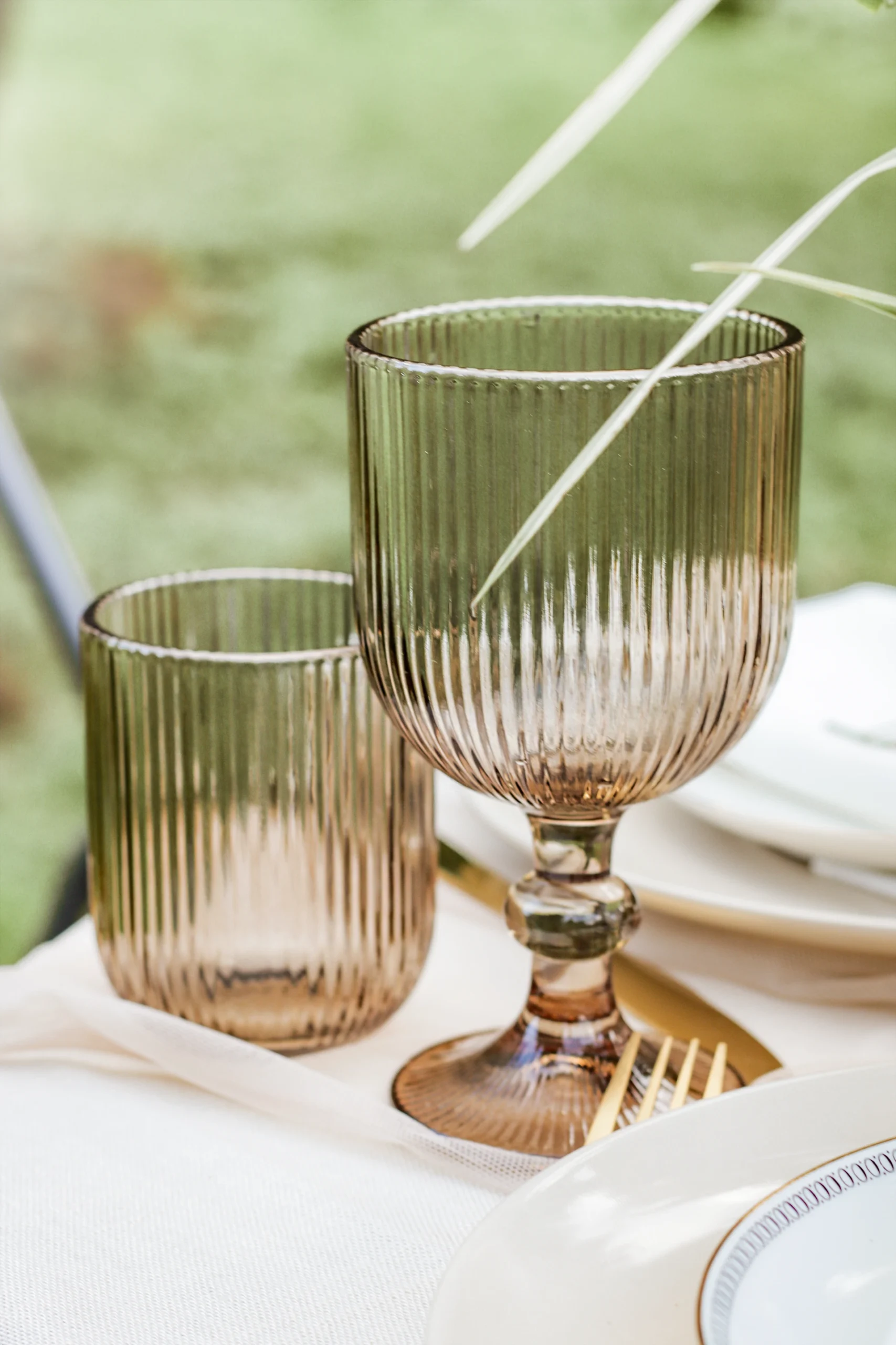 Brūna stikla glāze uz kājiņas vīnam vai ūdenim. 200ml tilpums. Pieejamas nomai 12 gb. Nomas cena ar PVN 1,21 EUR/diena Kopšana un lietošana Glāzes paredzētas tikai dzērienu pasniegšanai – lūdzam tās neizmantot citiem nolūkiem. Mazgāt tikai ar rokām – glāzes nav piemērotas trauku mazgājamajai mašīnai. Nelietot abrazīvus tīrīšanas līdzekļus, lai nesabojātu virsmu. Pēc mazgāšanas glāzes…